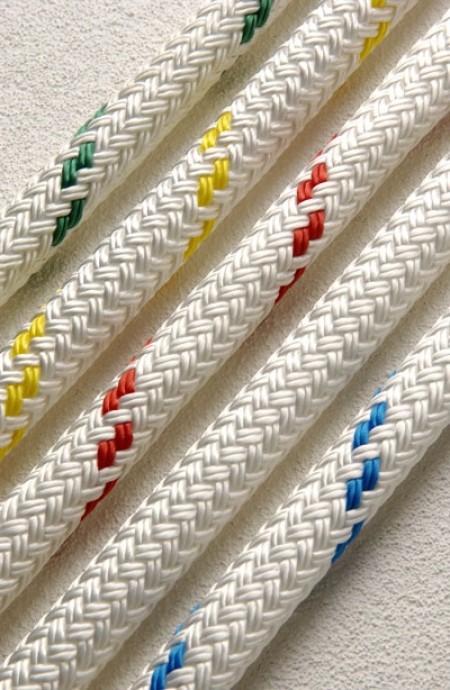 The rope is 100% polyester with a braided core covered with a durable braided cover, hence the name braid on braid. This construction gives the rope flexibility and durability which makes for good winching and block running. Braid on braid ropes are easily spliceable using hollow fids for forming eyes or for joining ropes.